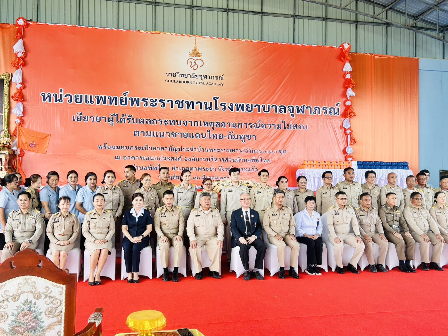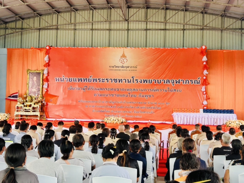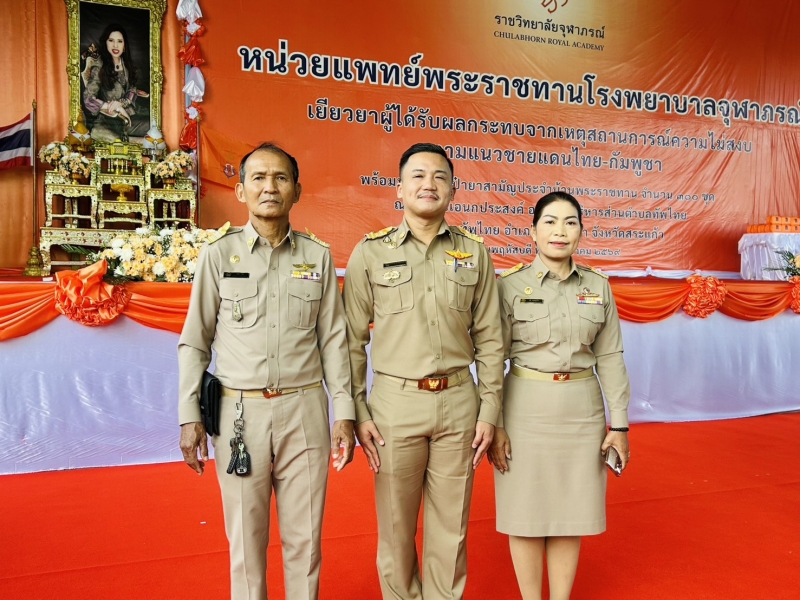 นายจักรกวิน รัตนไชยานนท์ นายกองค์การบริหารส่วนตําบลตาพระยา พร้อมด้วยคณะผู้บริหารเข้าร่วมพิธีเปิดหน่วยพระราชทานโรงพยาบาลจุฬาภรณ์เยียวยาผู้ประสบภัยจากเหตุการณ์ความไม่สงบ บริเวณพื้นที่ชายแดนไทย-กัมพูชา จังหวัดสระแก้ว พร้อมมอบกระเป๋ายาสามัญประจําบ้านพระราชทาน จำนวน 300 ชุด