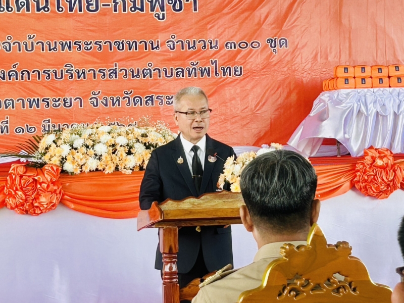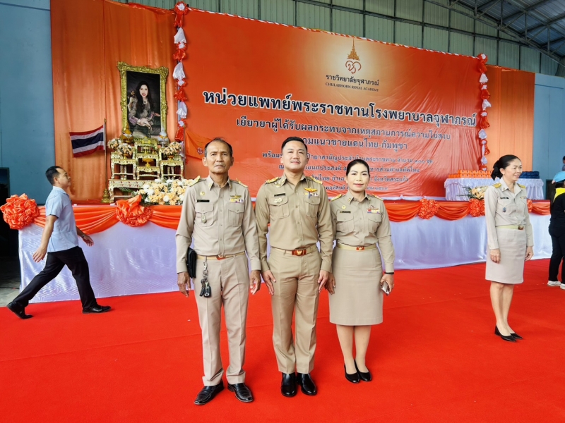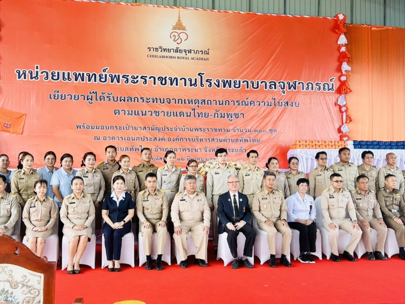 ดร.วัชระ ฉัตรวิริยะ รักษาการรองเลขาธิการราชวิทยาลัยจุฬาภรณ์ เป็นประธานในพิธี พร้อมด้วยนายปริญญา โพธิสัตย์ ผู้ว่าราชการจังหวัดสระแก้ว นายสุนทร มูเนาวาเราะ นายอำเภอตาพระยา เป็นผู้กล่าวรายงานสถานการณ์ในพื้นที่