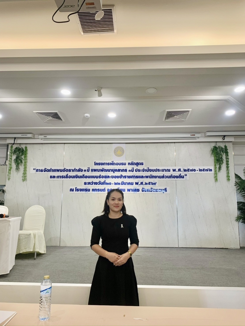 เข้าร่วมโครงการฝึกอบรมหลักสูตรการจัดทำแผนอัตรากำลัง 3 ปี แผนพัฒนาบุคากร 3 ปี ประจำปีงบประมาณ 2570-2572 และการเลื่อนเงินเดือนแบบร้อยละของข้าราชการ และพนักงานส่วนท้องถิ่น ระหว่างวันที่ 20 - 22 มีนาคม พ.ศ. 2569 ณ ห้องประชุม ศรุตษา โรงแรมแกรนด์จอมเทียนพาเลซ อำเภอบางละมุง จังหวัดชลบุรี