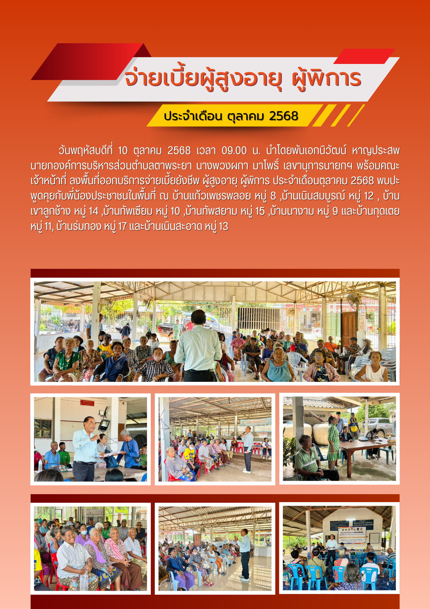 จ่ายเบี้ยยังชีพผู้สูงอายุ ผู้พิการ ประจำเดือนตุลาคม 2568
