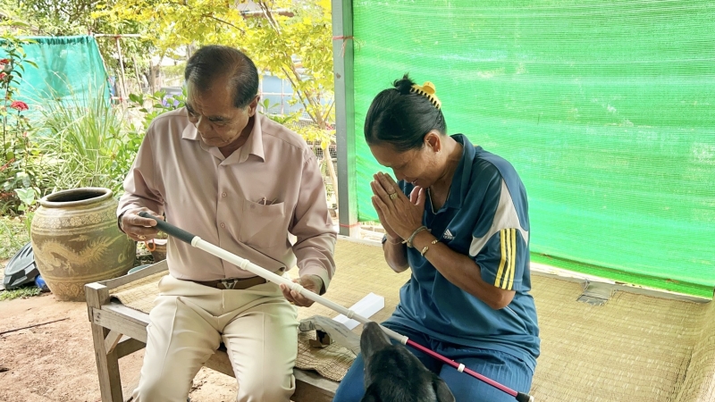 พันเอกนิวัฒน์ หาญประสพ นายกองค์การบริหารส่วนตำบลตาพระยา นักพัฒนาชุมชน พร้อมผู้ใหญ่บ้าน ลงพื้นที่มอบไม้เท้าพยุงเดินสำหรับผู้พิการทางสายตา ให้กับ นางธรรม เด่นดวงเดือน หมู่ 3 บ้านตะโก พร้อมพูดคุย และให้กำลังใจ โดยมีจุดมุ่งหมายเพื่อส่งเสริมคุณภาพชีวิต และสนับสนุนให้ผู้พิการสามารถดำรงชีวิตประจำวันได้อย่างมั่นใจและปลอดภัยมากยิ่งขึ้น