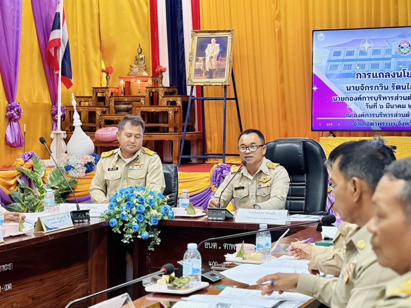 นายจักรกวิน รัตนไชยานนท์ นายกองค์การบริหารส่วนตำบลตาพระยา ได้แถลงนโยบายต่อที่ประชุมสภาองค์การบริหารส่วนตำบลตาพระยา ในคราวประชุมสภาองค์การบริหารส่วนตำบลตาพระยา สมัยสามัญ สมัยที่ 1 ประจำปี พ.ศ. 2569 ณ ห้องประชุมสภาองค์การบริหารส่วนตำบลตาพระยา