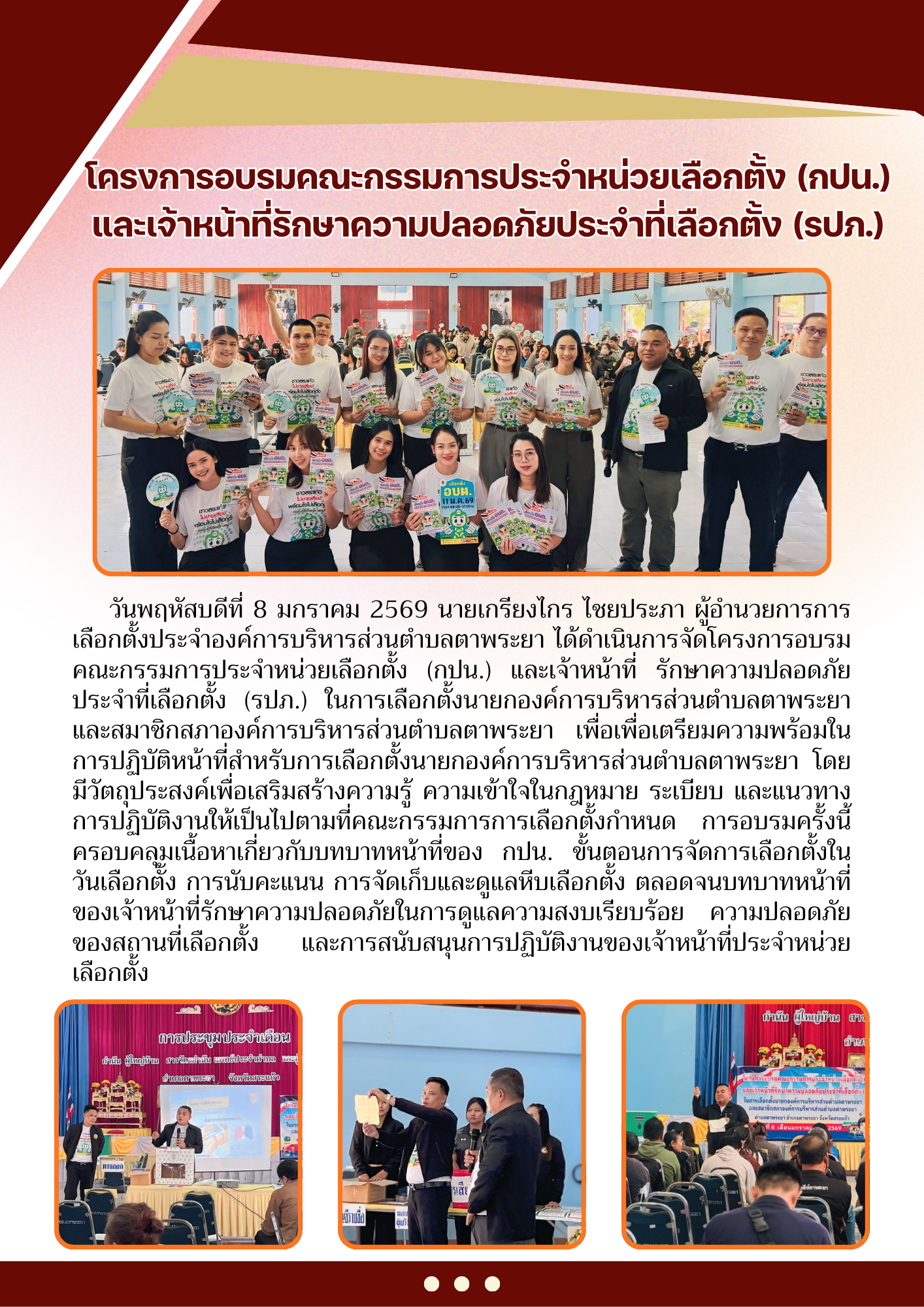 โครงการอบรมคณะกรรมการประจำหน่วยเลือกตั้ง (กปน.) และเจ้าหน้าที่รักษาความปลอดภัยประจำที่เลือกตั้ง (รปภ.) |