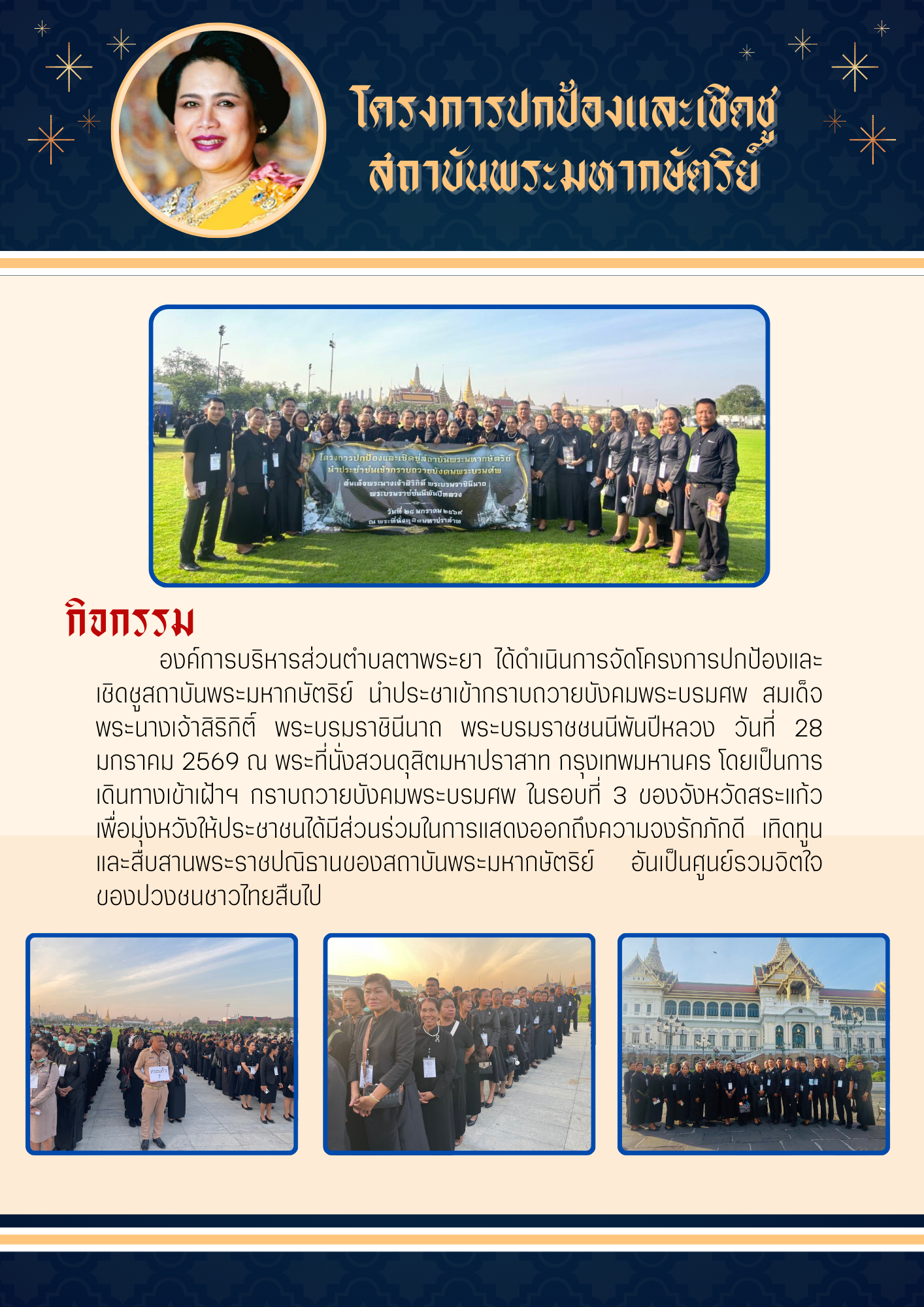โครงการปกป้องและชิดชูสถาบันพระมหากษัตริย์ นำประชาชนเข้ากราบถวายบังคมพระบมศพ สมเด็จพระนางเจ้าสิริกิติ์ พระบรมราชินีนาถ พระบรมราชชนนีพันปีหลวง ณ พระที่นั่งสวนดุสิตมหาปราสาท |