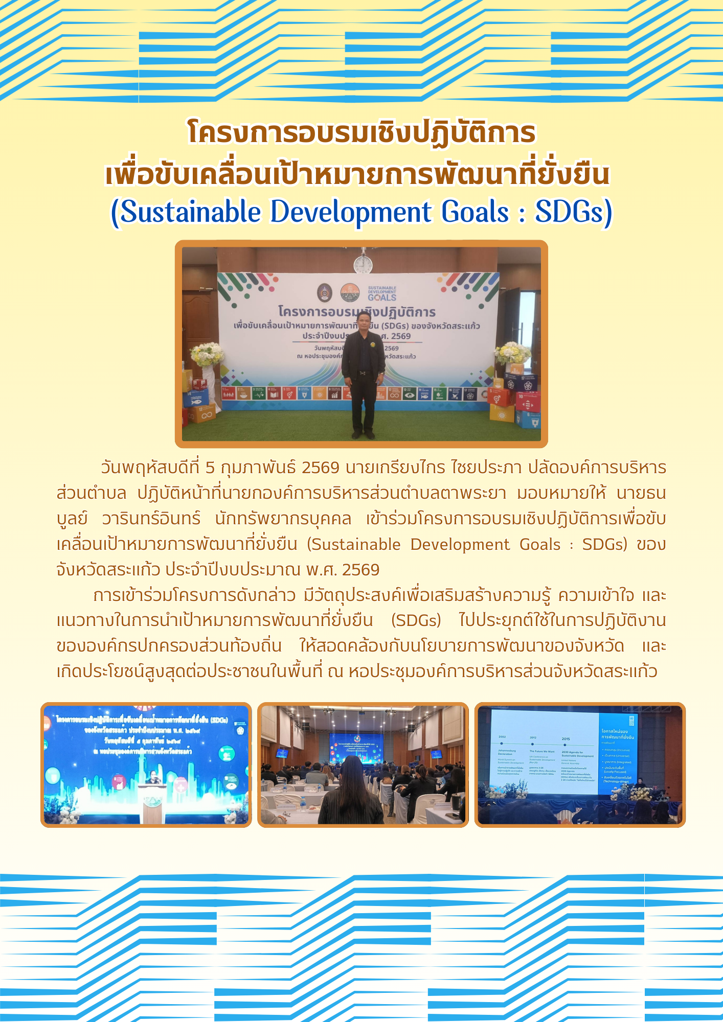 โครงการอบรมเชิงปฏิบัติการเพื่ขับเคลื่อนเป้าหมายการพัฒนาที่ยั่งยืน (SDGs) |