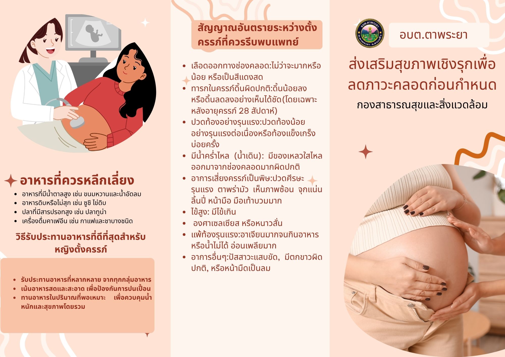 กองสาธารณสุขและสิ่งแวดล้อม องค์การบริหารส่วนตำบลตาพระยา ขอประชาสัมพันธ์สื่อประชาสัมพันธ์โครงการเสริมสร้างสุขภาพเชิงรุกและลดภาวะคลอดก่อนกำหนด
